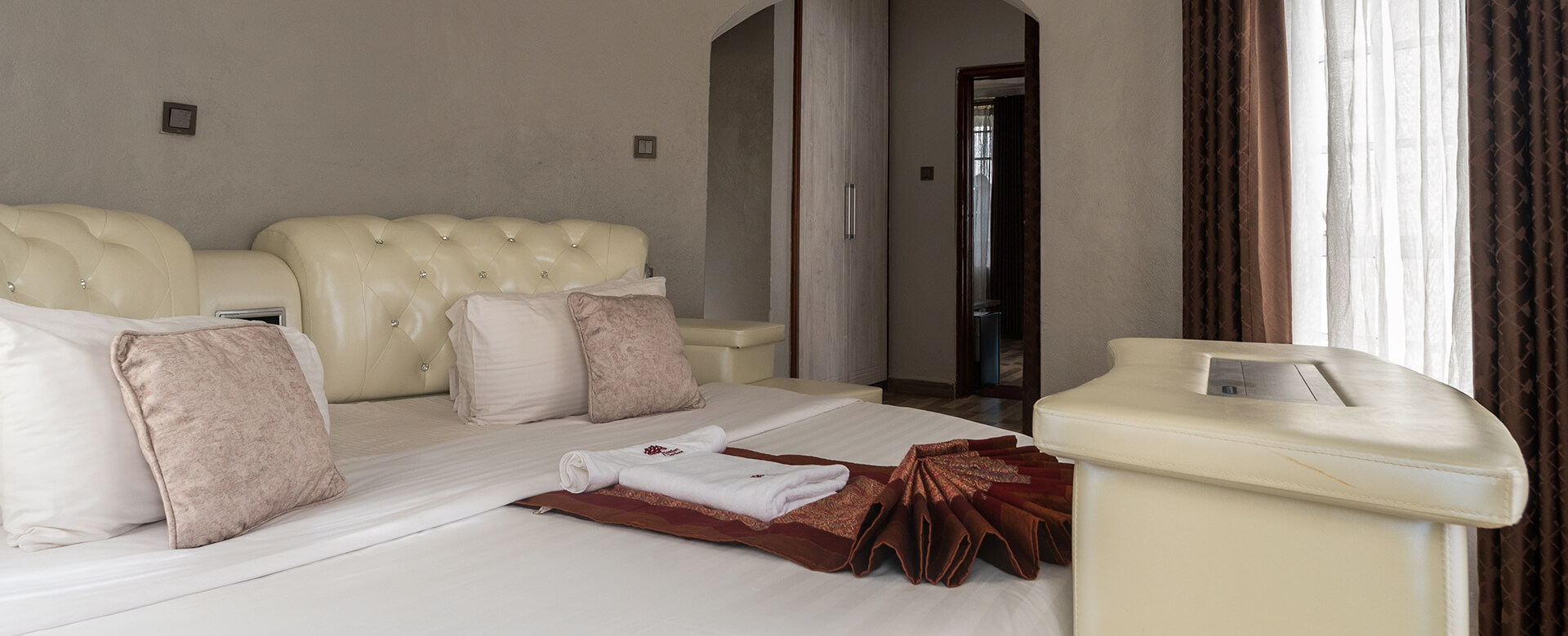 Treat yourself to the ultimate escape in our Royal Suite, a beautifully appointed penthouse perched on the highest floor of our charming castle-inspired building. Here, above the treetops and away from the world’s noise, you’ll find peace, privacy, and breathtaking views of Mount Kenya and the lush gardens below.